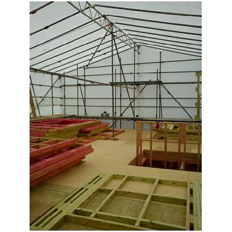 Что касается конструкции, то вопрос по каждому объекту индивидуален. В основном строительные леса (хомутовые), а перекрытия можно и нужно применять "фермы". Это как временные сцены устанавливают, что-то подобное. (См. фото. Зима и под пленкой), или заказывать что-то конкретное. Вопрос в разработке. Но заказ нужно под гарантированные заказы для сдачи в аренду. Сама конструкция например сцены стоят дорого (от 1,5 до 8 млн. руб). Долгоиграющий процесс окупаемости.