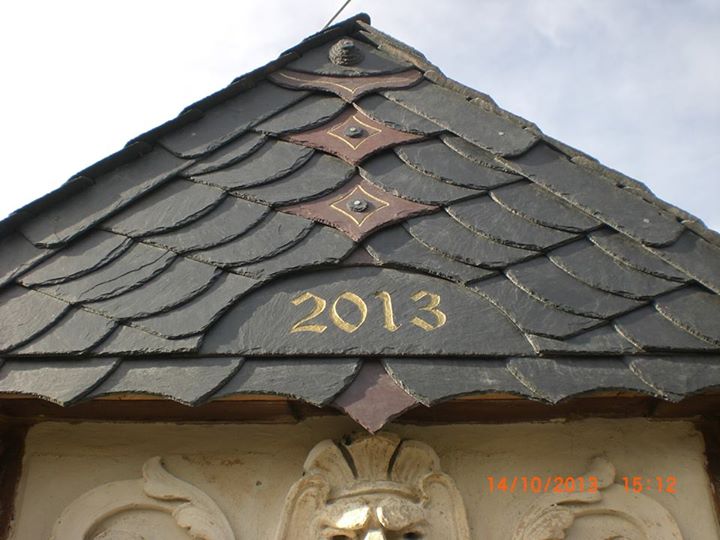 На одной из фото виден на фасаде человечек, несущий кровлю над головой. Видно он себя изобразил (причем в сланце). Круть вобщем. :D