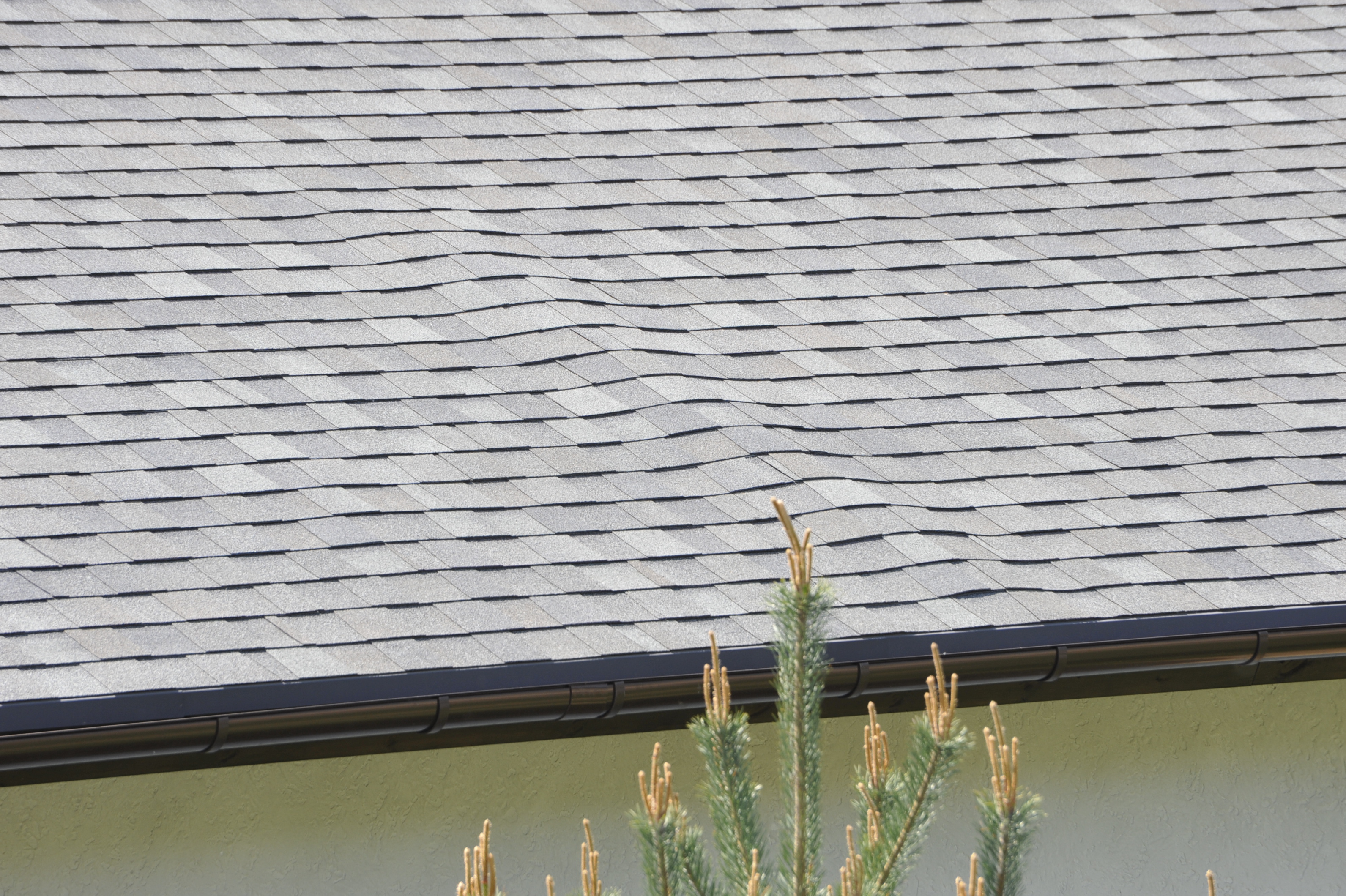 Применеие двух слоёв фанеры 6 и 6 или 9 и 9 может привести к таким последствиям, ещё зазор между фанерой не оставлют, сама фанера не водостойкая. Следствие волна. Кстати такой вариант можно поробовать вылечить без разбора кровли.
