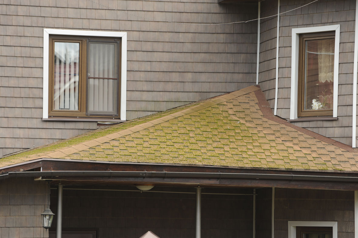 Нарастающий мох начинает приподнимать края битумной плитки. В дополнение ко снегу и льду, эти наросты приведут к тому, что края будут полностью отклеены. Сам видел подобные кровли. А что это, если не разрушение?