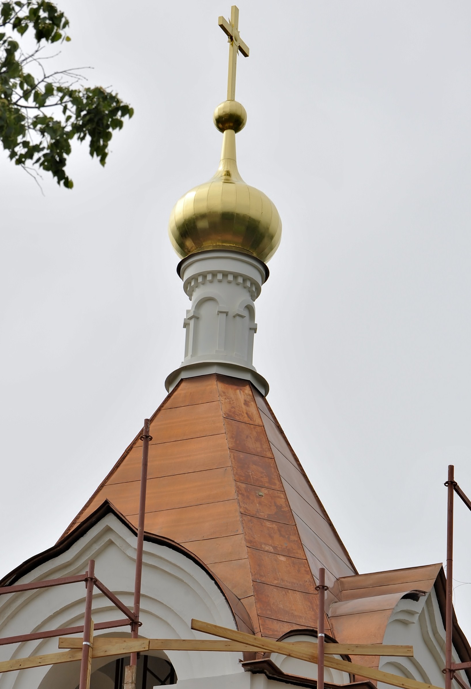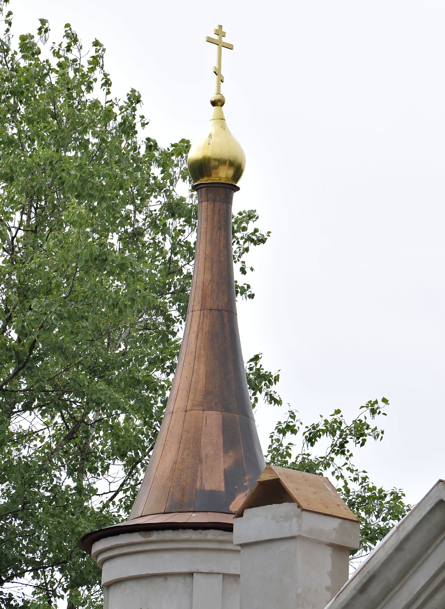 Прилагаю пару фото с реконструкцией храма, которую выполняют "коллеги". Пообщался с робатягами, но кроме бригадира у них никто ничего не знает. Меня смущает неравномерность окисления меди на малой башне (По опыту немцкая медь не настолько красная, а генподряд уверяет, что медь не российская) и техника монтажа на большой башне На мой взгял тут вообще ничего не сделано как надо.