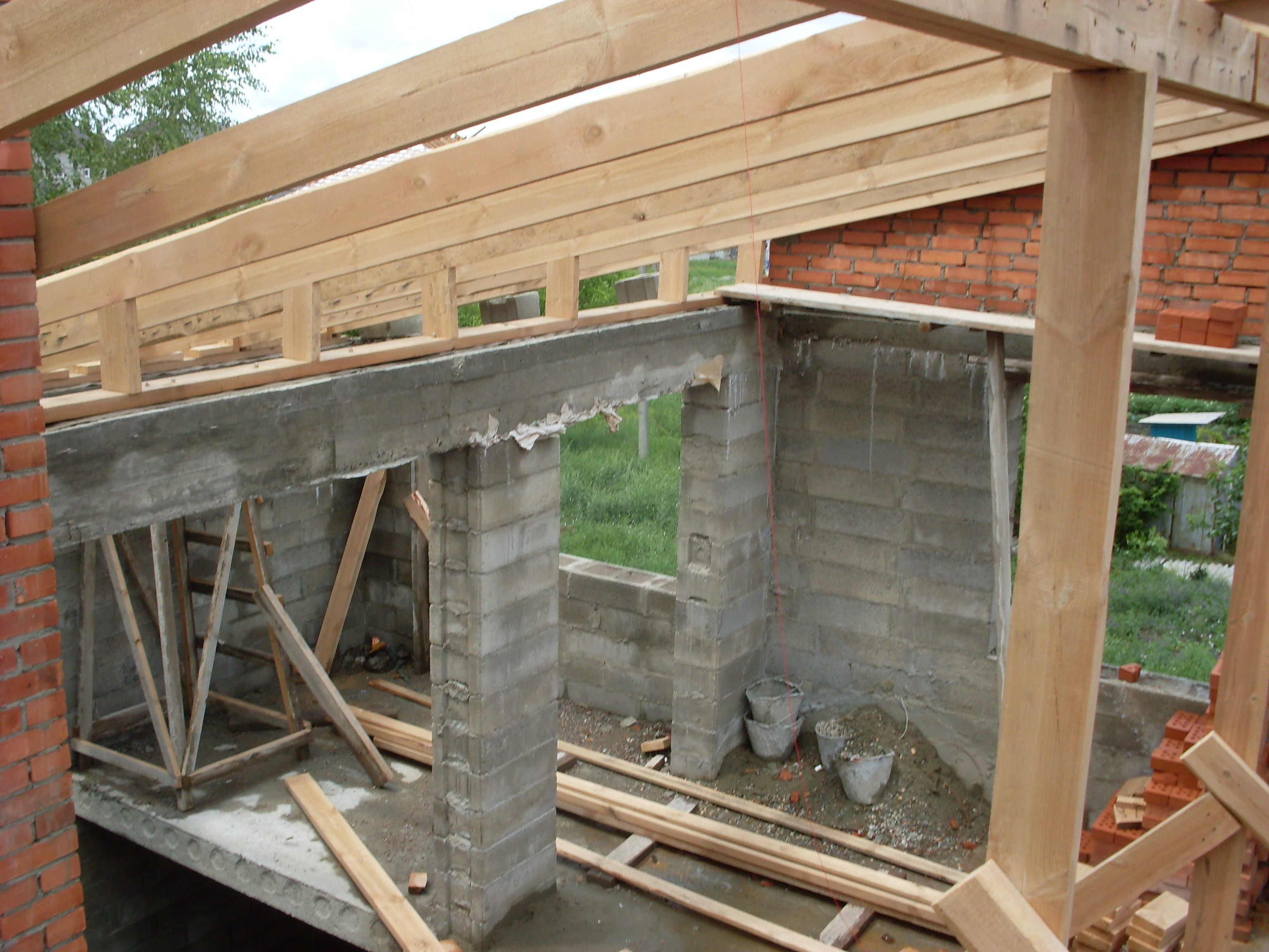 Замечания: дрова без антисептика (местами наблюдается грибок), отсутствуют затяжки под коньковым прогоном, накладки нужны над коньковым прогоном с одной стороны строп.ног, нужны подкосы в вашем случае одинарных ног, т.к. ширина пролета с учетом оч.малого уклона ската кровли на одном из фото довольно большая может быть образован прогиб и т.д. Вообще сразу видно, чтобы собирали ее "беглые рабы".