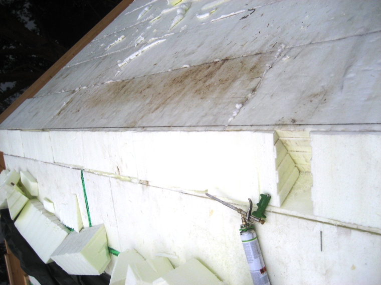 Технологический зазор на коньке заполнен пеной. Позже избыток пены будет срезан