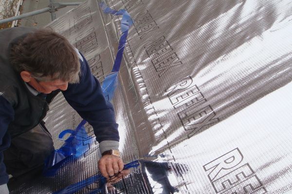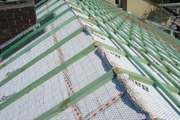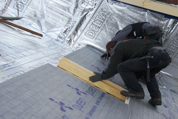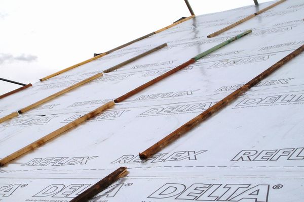 На этой немецкой крыше использованы плиты от PUREN, пароизоляция DELTA-REFLEX PLUS монтировалась непосредственно на стропила, т.е. сплошного настила не было. Благодаря большому размеру (ок. 1,2*2,4 м) плит так можно делать.