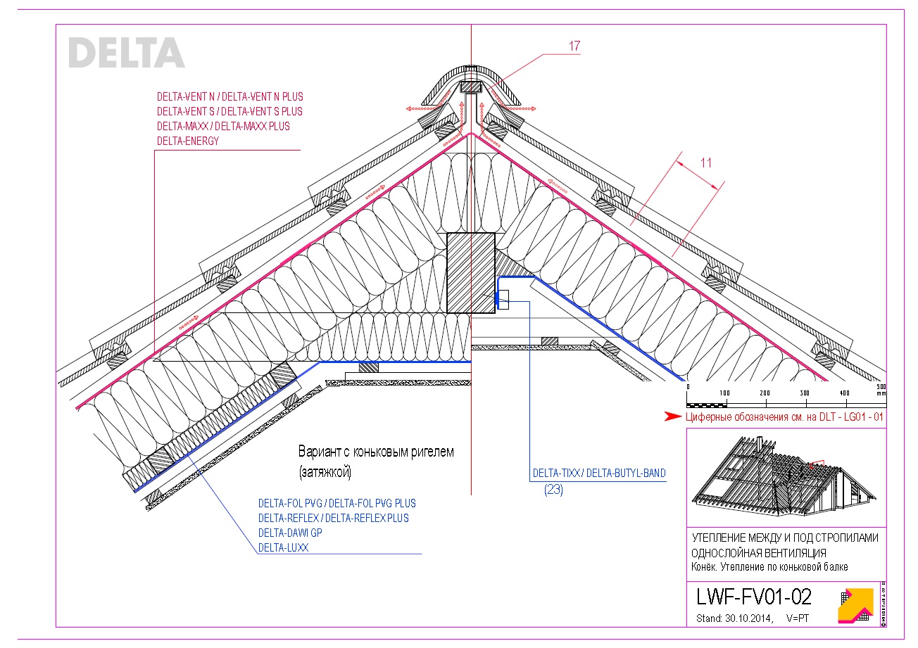 Поэтому рекомендую обрезать по торцам стропил старую плёнку D96 и изнутри смонтировать диффузионную мембрану (схема прилагается).