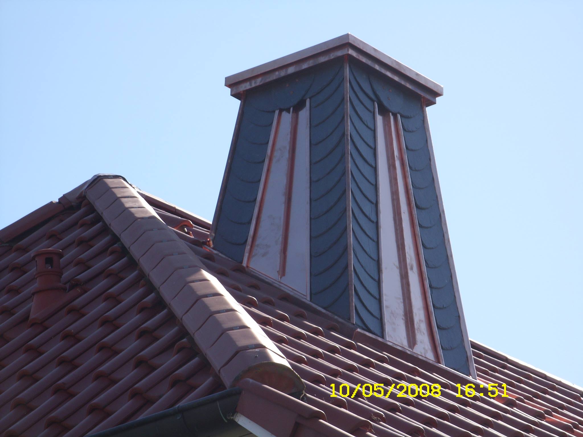 Понравилась такое оформление трубы на кровле. Выглядит очень красивою