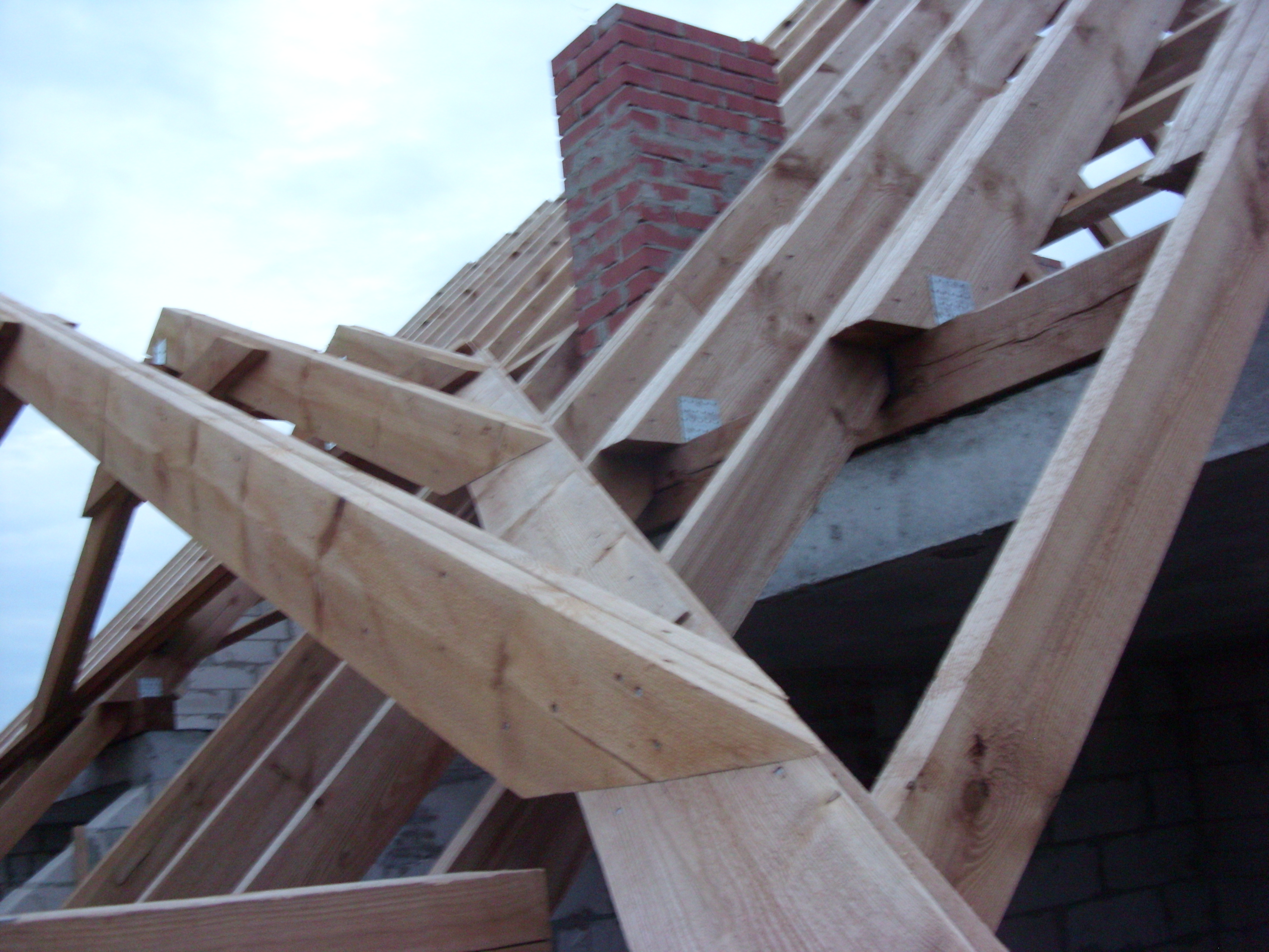 на стык ендов опускается 3 четырехметровых стропила с одного ската , конек и стропилки второго. Плюс кровля и снеговая нагрузка. Снизу подпорок нет.