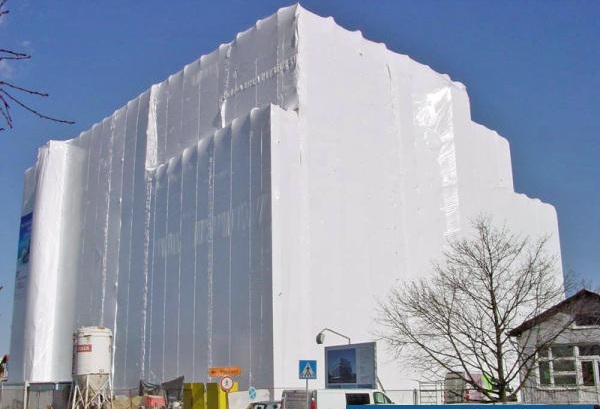 Предлагаю Вам ознакомиться с новым уникальным способом защиты объектов строительства от природного воздействия. Новая технология пришла к нам в Россию из-за "бугра" (как и все остальное). Технология заключается в укрытие объектов термоусадочной пленкой, размеры которой неограниченны. (максимальная ширина и длинна рулона 12*30метров)