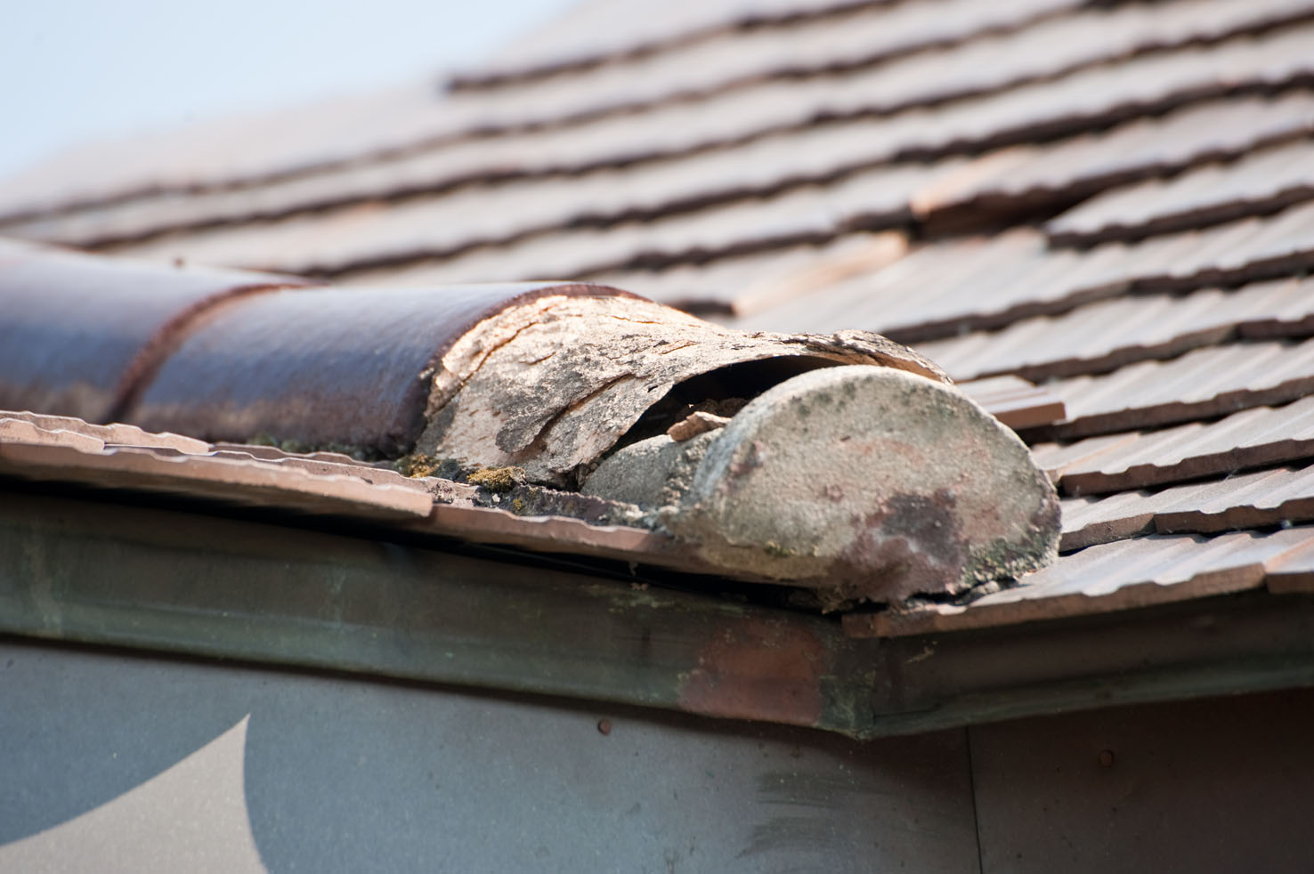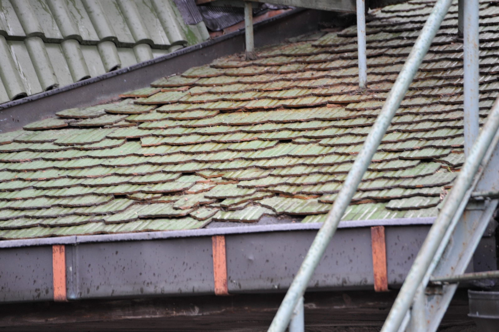 На фото все та же загадачная черепица, которая изрядно пострадала (начала разрушаться скорее всего от морозов).