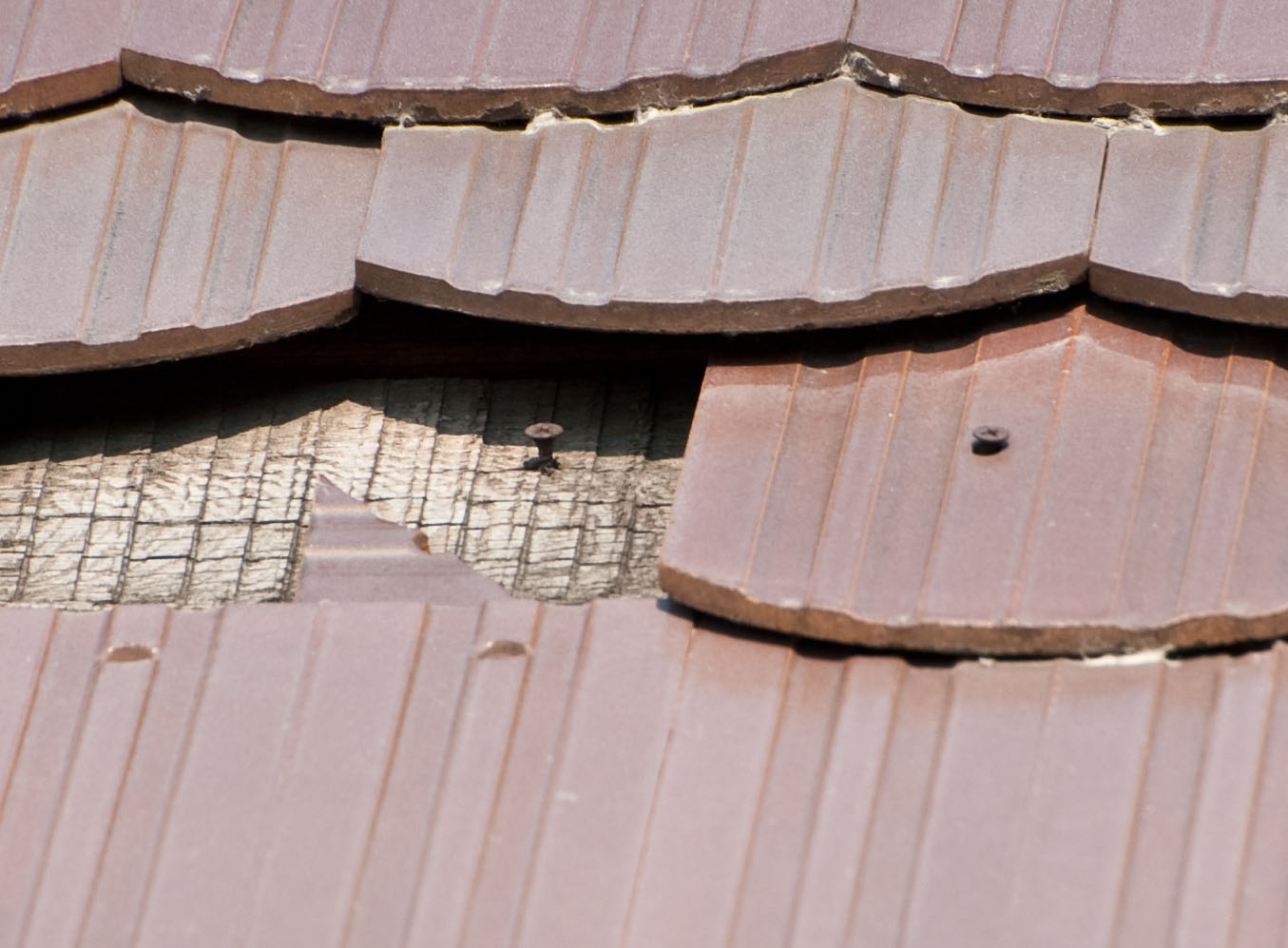 На верхнем фото - полимер-песчаная черепица из переработанных пластиковых бутылок. Странно, что сохранилась до наших дней. Обычно такая "кровля" разваливается за 3-4 года.