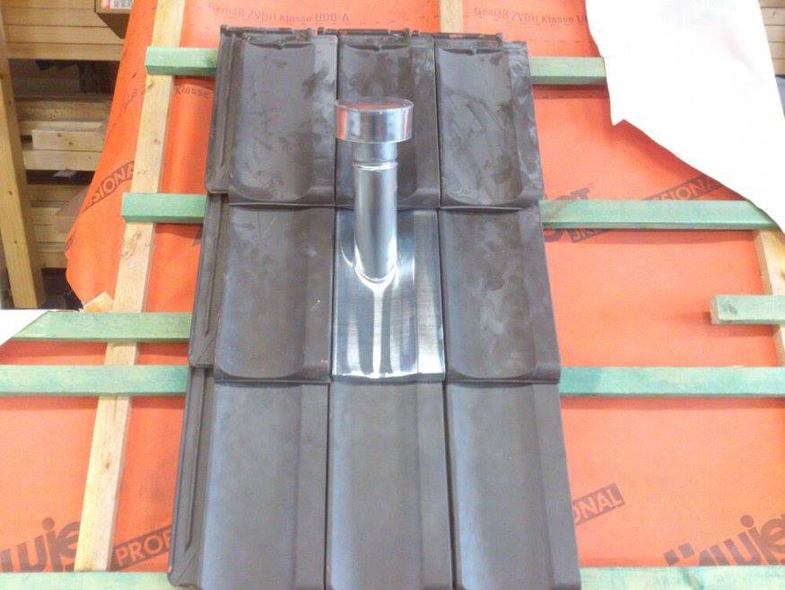 Черепичка с проходкой ( отверстием) для вывода стояка канализационной вытяжки. (2-3 шт. на кровлю в зависимости от количества и расположения туалетных комнат.)