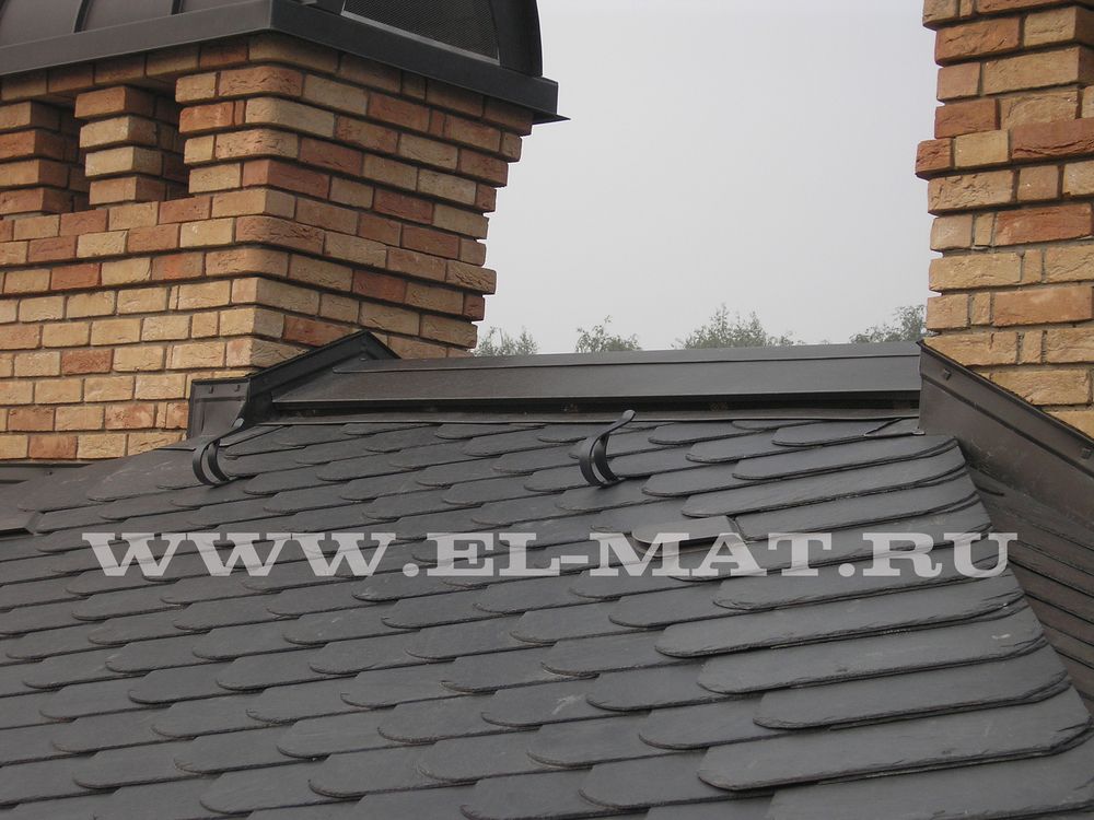 Думаю для сланца это не совсем удобный вариант , т. к. плитка укладывается с "перехлёстом" 2/3 и "хвост" крепления "слишком большой", т.е. "жёсткости" маловато. Данный вариант используется на кровлях из "штучных" металлических элементов и является действительно удачным. На сланец мне кажется лучше использовать элементы пожёстче.